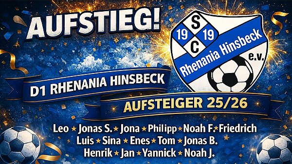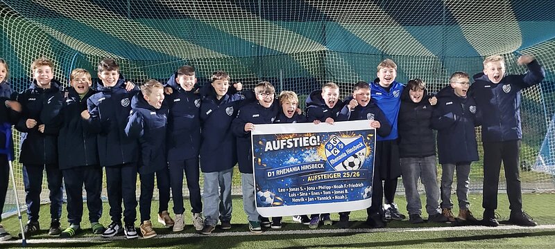Nachdem am Samstag bereits spekuliert worden war, dass wir wohl um den Aufstieg in die Kreisleistungsklasse spielen dürfen, kam am Montag die Wende: Wir sind direkt aufgestiegen, da unter anderem Oppum D2 nicht aufsteigen darf. Die Freude im Trainerteam war groß, doch wie sagt man das den Kindern? Wir entschieden uns, sie zu überraschen, und lockten sie mit Unterstützung der Eltern unter dem Vorwand eines Aufstiegsspiels nach Hinsbeck auf den Platz. Doch anstatt eines Spiels wartete dort ein Plakat mit der Aufschrift „Aufsteiger 25/26“. Nach kurzer Verwirrung war die Freude riesig. Anschließend gab es Pizza, Getränke und als weiteres Highlight die neuen Trainingsanzüge. Vielen Dank an das Autohaus Nagel für das Sponsoring.